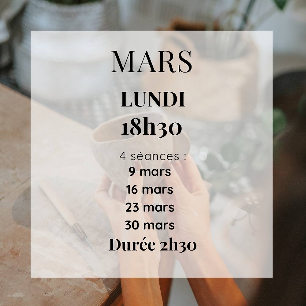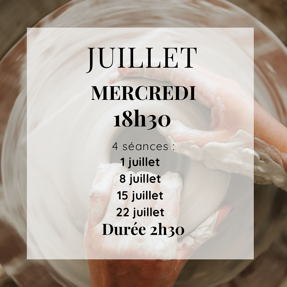 Nous proposons plusieurs cours de tournage et de modelage par semaine. L'inscription se fait au mois. À un rythme d'une fois par semaine, vous apprendrez à façonner vos propres objets au tour de potier, ou à la main : vase, assiettes, tasses...